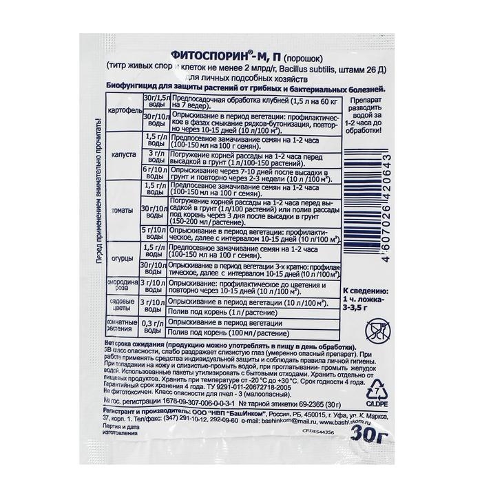 Биопрепарат от бактериальных и грибных болезней растений Фитоспорин-М, 30 г