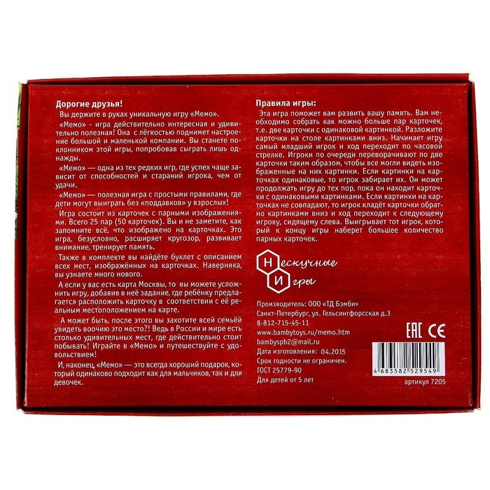 Настольная игра «Мемо. Москва», 50 карточек + познавательная брошюра