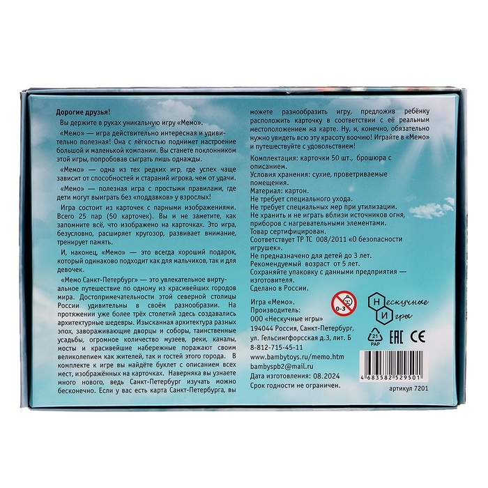 Настольная игра «Мемо. Санкт-Петербург», 50 карточек + познавательная брошюра
