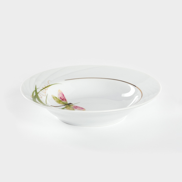 Тарелка фарфоровая глубокая «Стрекоза», 250 мл, d=20 см, белая