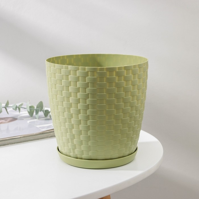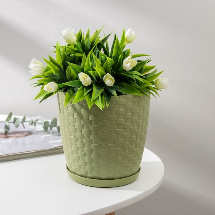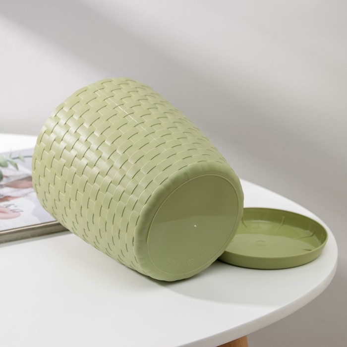 Горшок для цветов с поддоном «Ротанг», 2 л, цвет оливковый