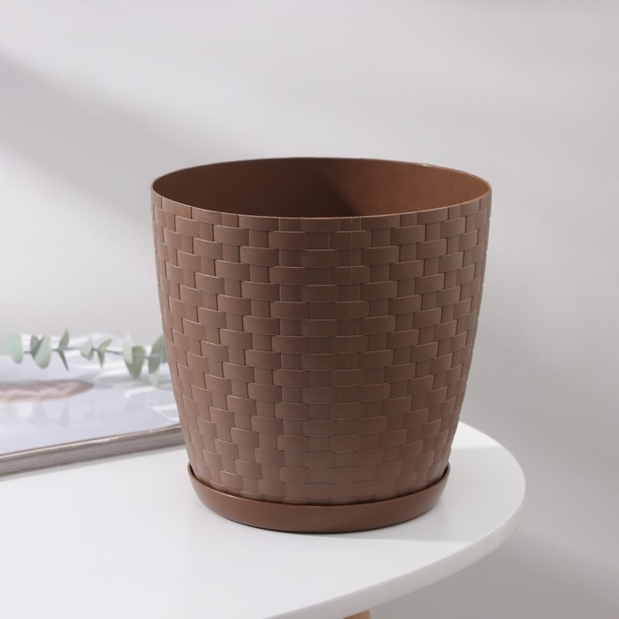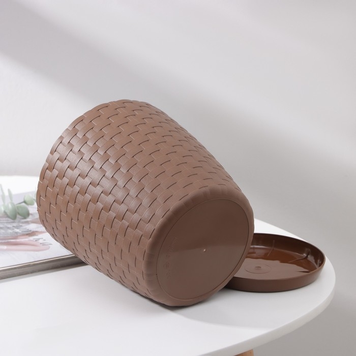 Горшок для цветов с поддоном «Ротанг», 3 л, цвет тёмно-коричневый