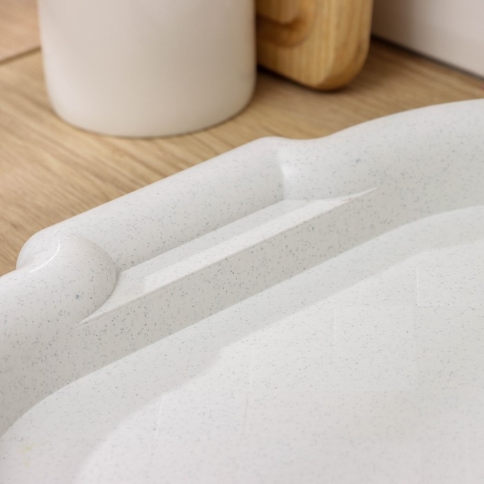 - Высокие бортики не позволяют посуде соскользнуть, а всё случайно пролитое или просыпанное останется на подносе;