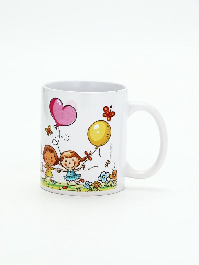 Кружка изготовлена из керамики. Рисунок нанесён методом сублимации, при котором краска проникает в верхний слой изделия, поэтому изображение получается стойким.