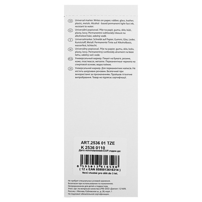 Centropen 2536 — это перманентый светостойкий маркер с эргономичной зоной обхвата. Предназначен для письма на любых поверхностях.