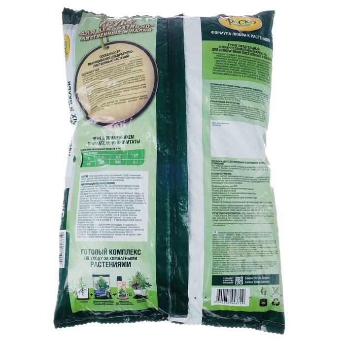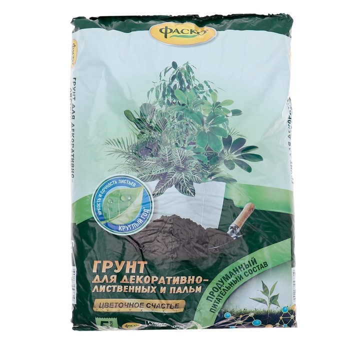 Универсальный профессиональный специализированный грунт для выращивания комнатных растений: диффенбахий, кротонов, монстер, драцен, фатсий, юкк, кордилин, бересклета, марант, пальм, фикусов, филадендронов, сингониумов, панданусов, иперуса, хлорофитумов, традесканций, сциндапсусов, плющей, шефлеры и других декоративно-лиственных растений. Обеспечивает высокую декоративность и устойчивую окраску листьев. Ускоряет рост и развитие растений