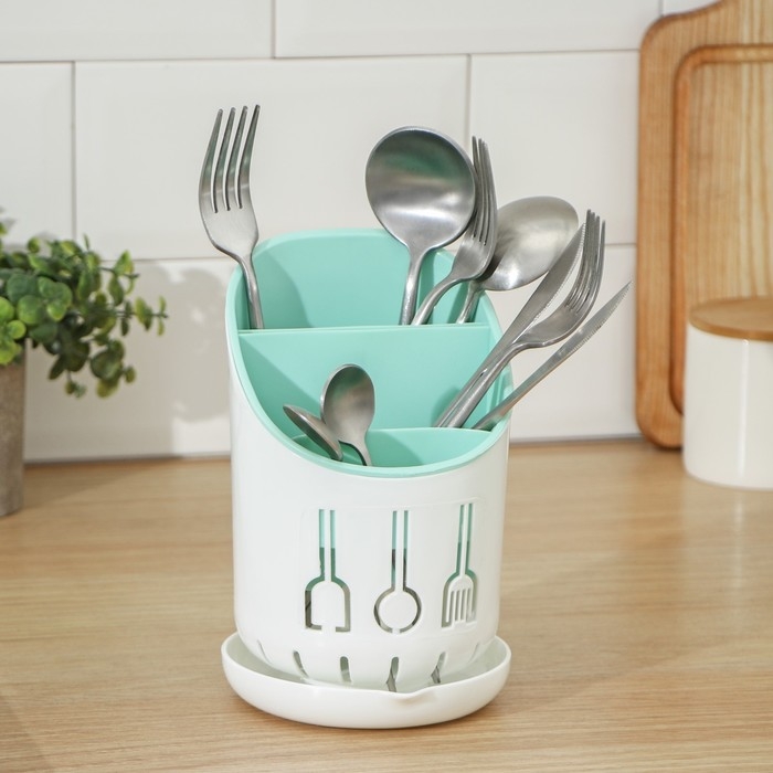 Подставка для столовых приборов с 3 отделениями - идеальный аксессуар для вашей кухни.