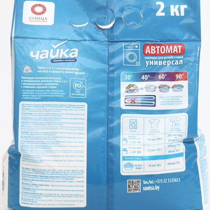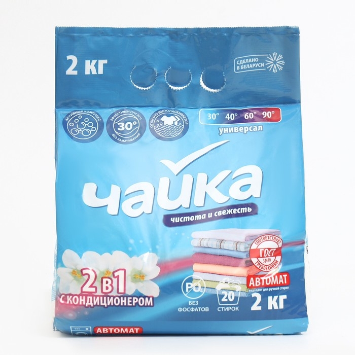 Порошок для стирки Чайка 2 в 1 «Чистота и свежесть», автомат, 2 кг