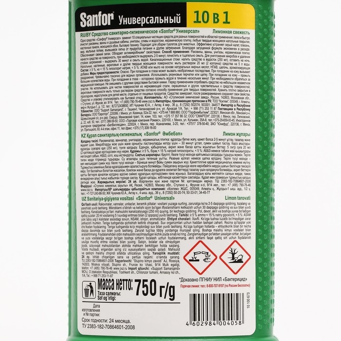 Универсальное чистящее средство Sanfor "Лимонная свежесть", 10 в 1, 750 мл