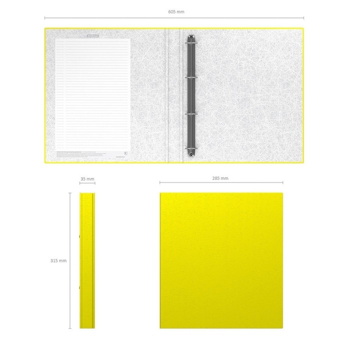 Папка - регистратор формата А4 снабжена механизмом на O-кольцах диаметром 25 мм. Изготовлена из картона толщиной 1,75 мм, покрытого бумагой со структурным тиснением и водоотталкивающей поверхностью. Корешок шириной 35 мм. Вместительность до 250 листов бумаги плотности 80 г/м². На форзаце есть шаблон для оглавления. Удобна для проведения презентаций, представления документации на семинарах. Коллекция представлена в ярких неоновых цветах.