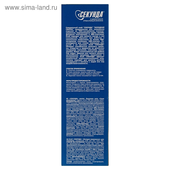 Холодная сварка "Секунда" для линолеума и всех типов ПВХ, прозрачная, 75мл