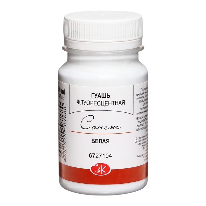 Гуашь художественная в банке 100 мл, Fluo, ЗХК "Сонет", белая флуор (6727104)