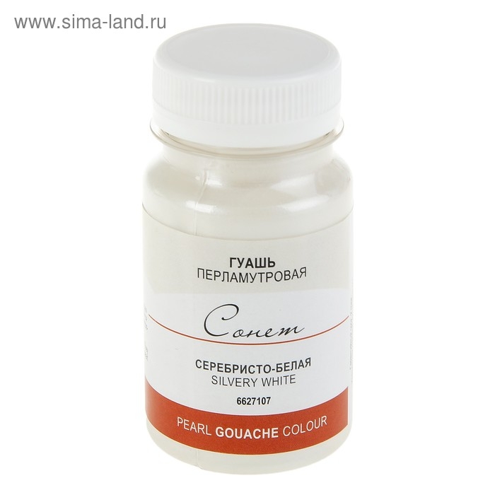 Гуашь художественная в банке 100 мл, Pearl, ЗХК "Сонет", ребристо-белая перламутр (6627107)