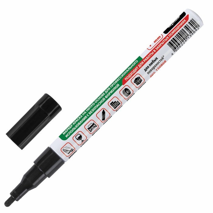 Маркер-краска (лаковый) 2.0 мм BRAUBERG, металлический корпус, чёрная нитро-основа