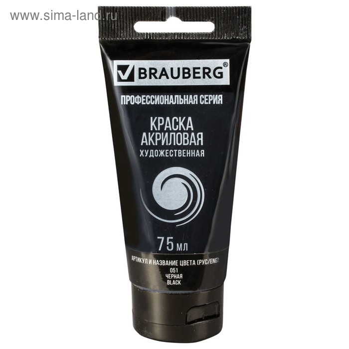 Краска акриловая художественная туба 75 мл, BRAUBERG "Чёрная"