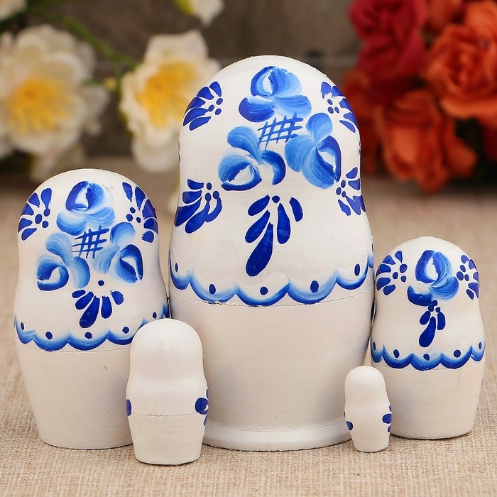 Матрёшка «Гжель», белое платье, 5 кукольная, 10 см