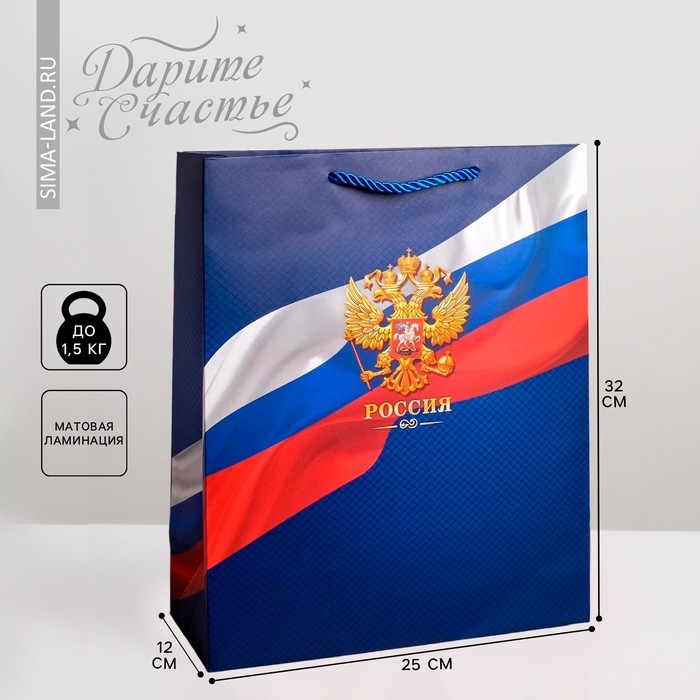Пакет подарочный вертикальный, упаковка, «Россия», 25 х 32 х 12 см