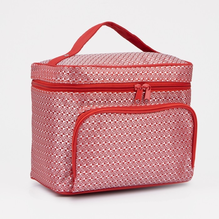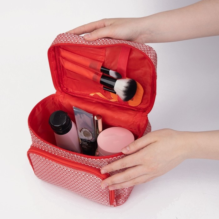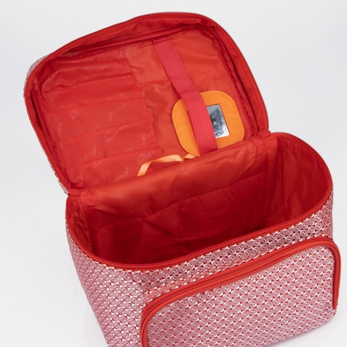 Косметичка на молнии, с зеркалом, цвет красный