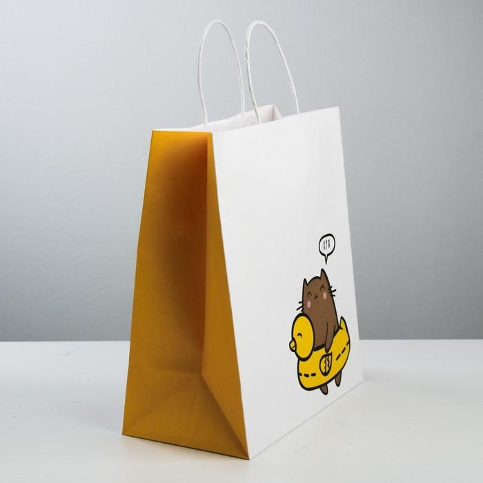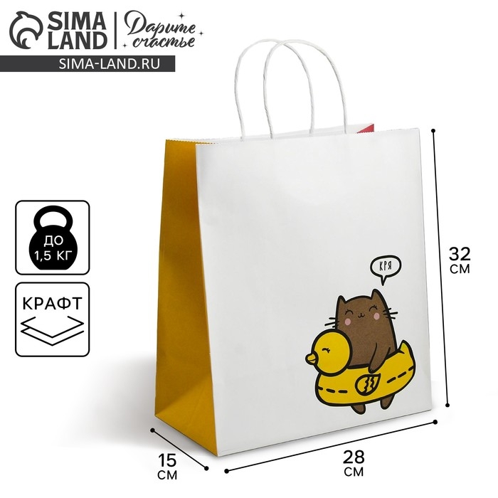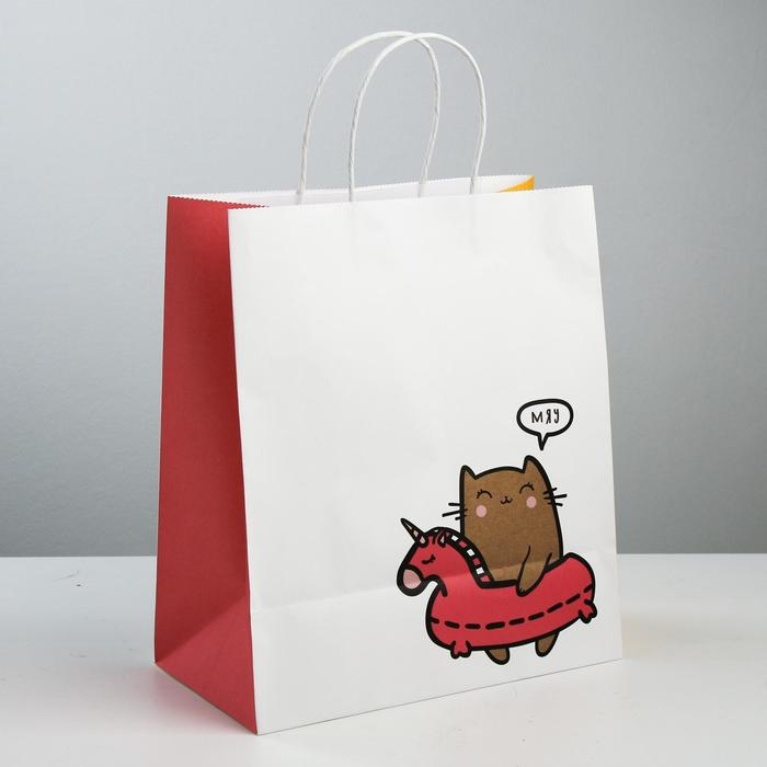 Пакет подарочный крафтовый, упаковка, «Котик», 28 х 32 х 15 см