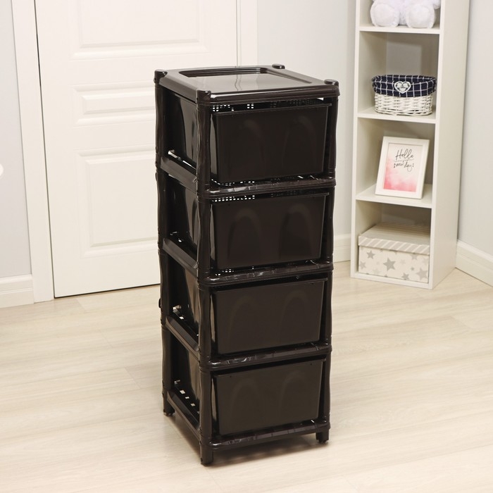С помощью практичного пластикового комода вы правильно организуете хранение вещей. Изделие имеет жёсткую конструкцию за счёт цельных боковых стенок. Отсутствие острых углов делает его безопасным для ребёнка. Комод изготовлен из экологически чистого материала, не содержит вредных веществ.