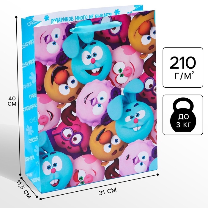 Пакет подарочный, 31х40х11.5 см, упаковка, Смешарики