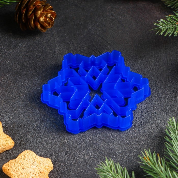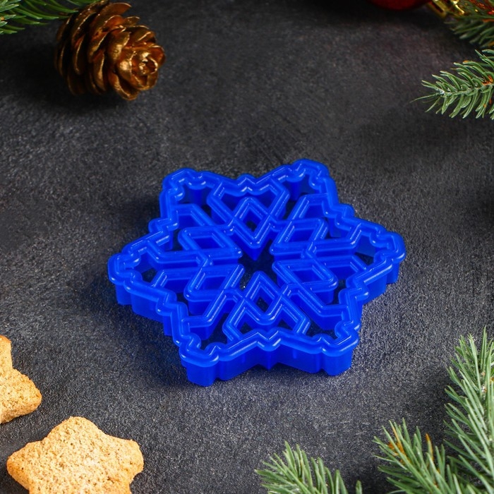 Форма для печенья «Снежинка», вырубка, штамп, 9×9 см, цвет синий