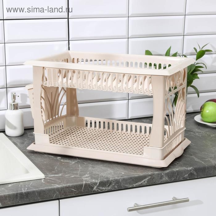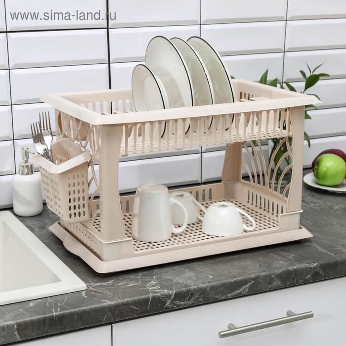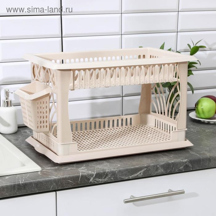Сушилка для посуды 2-х ярусная «Мечта хозяйки», 48×30,5×30 см, цвет бежевый