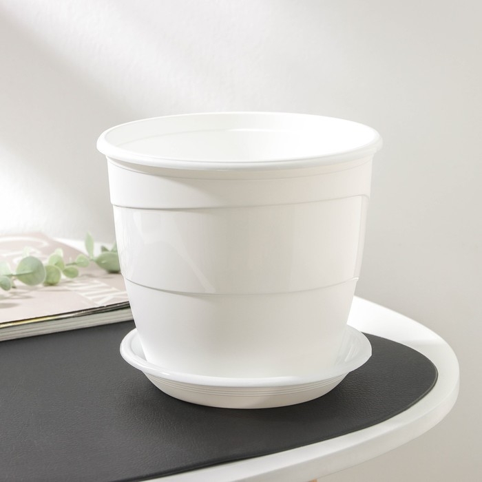 Горшок для цветов с поддоном «Венеция», 2 л, d=16 см, цвет белый