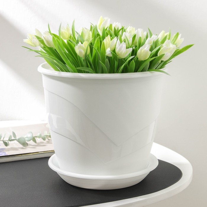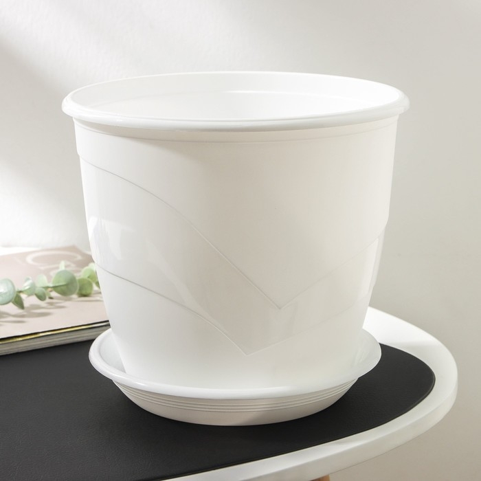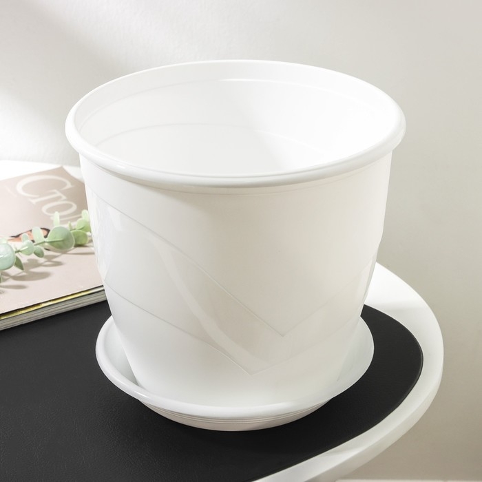 Горшок для цветов с поддоном «Венеция», 4,1 л, d=21 см, цвет белый