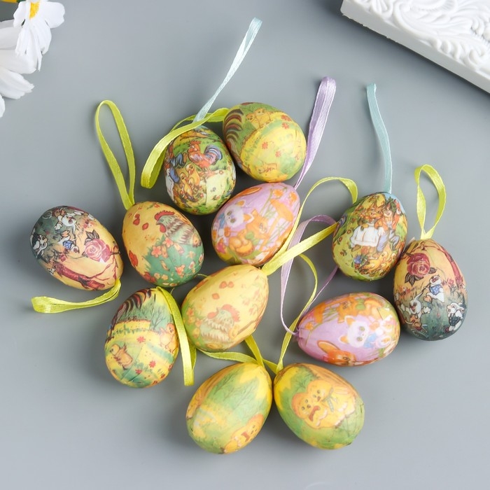 Декор пасхальный подвеска "Яйцо - петушок с цыплятами" набор 12 шт яйцо 3х4 см