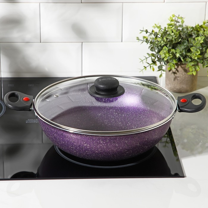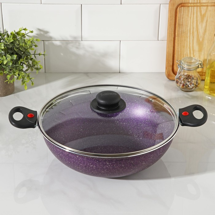 Казан, 4 л, d=28 см, стеклянная крышка, две съёмные ручки, цвет фиолетовый