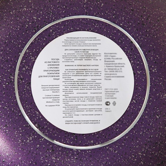 Казан с гранитным антипригарным покрытием. Посуда для газовых и электрических плит бытового назначения, из пищевого алюминия. Внутренне 5-ти слойное антипригарное покрытие (Whitford, Италия) + 2 дополнительных слоя "эффект гранита". Несколько слоев итальянского антипригарного покрытия обеспечивают быстрый нагрев, безопасное и удобное приготовление пищи, а также долговечность посуды. Эргономичная бакелитовая съёмная ручка. Толщина стенки 1,8 мм.