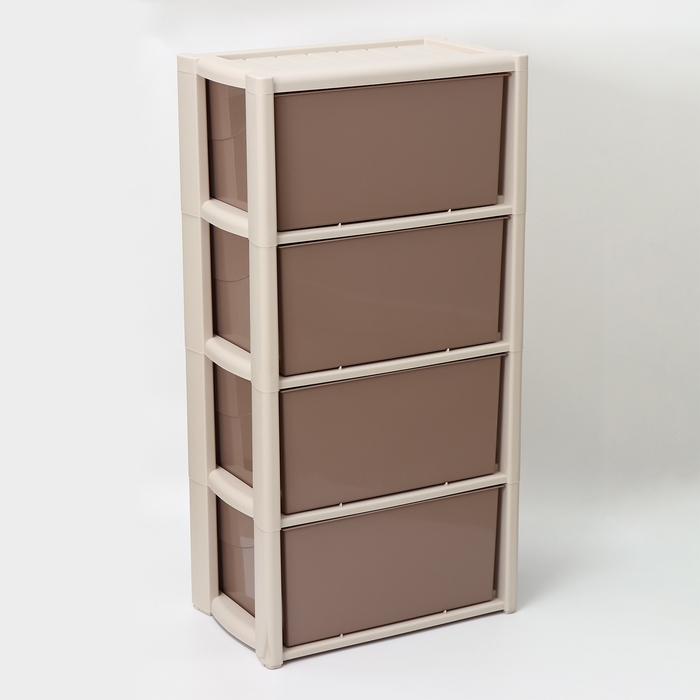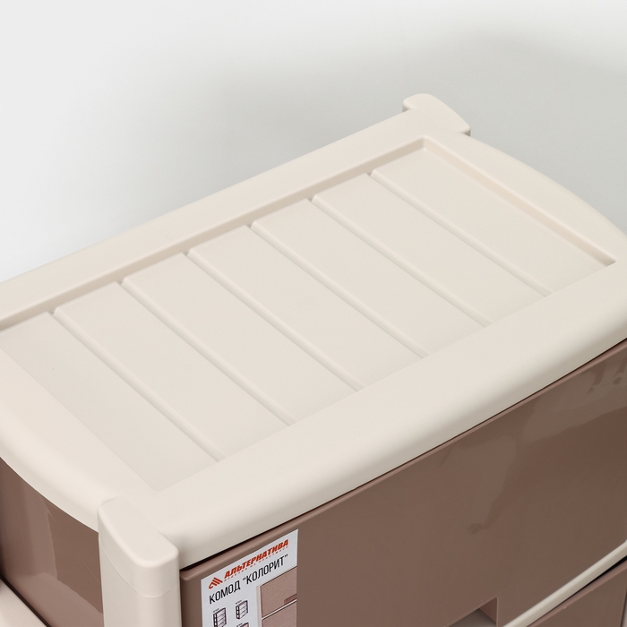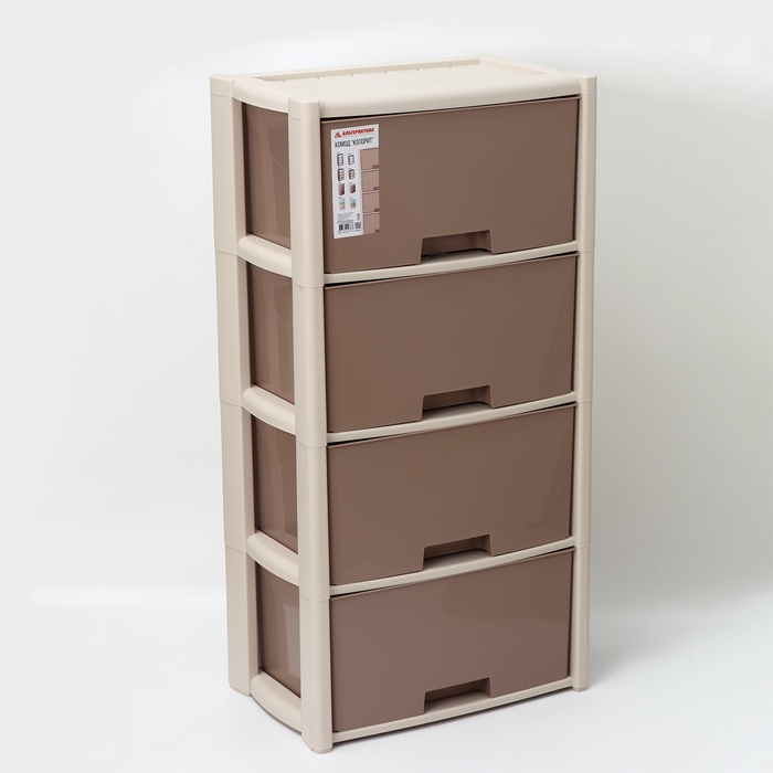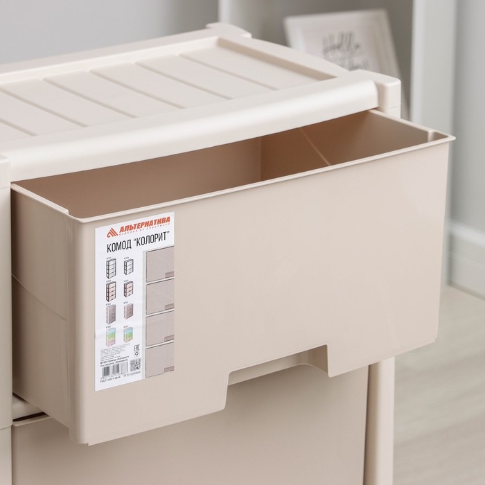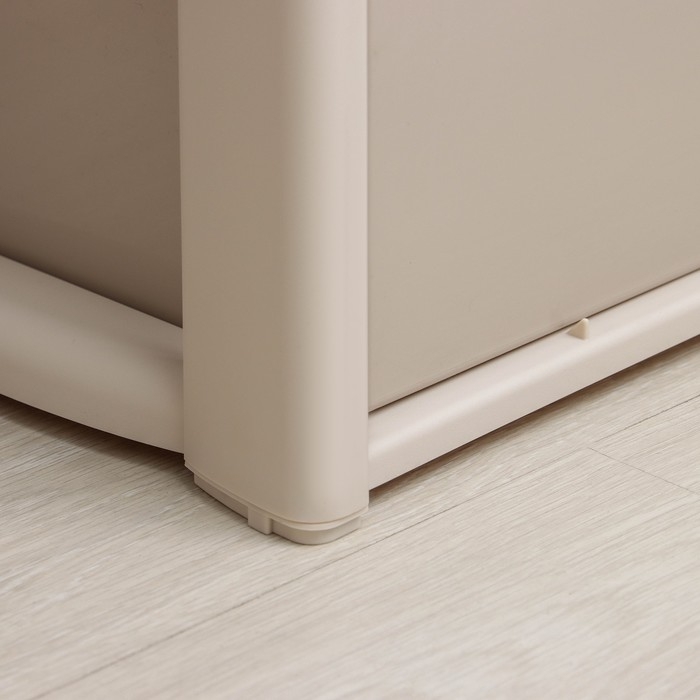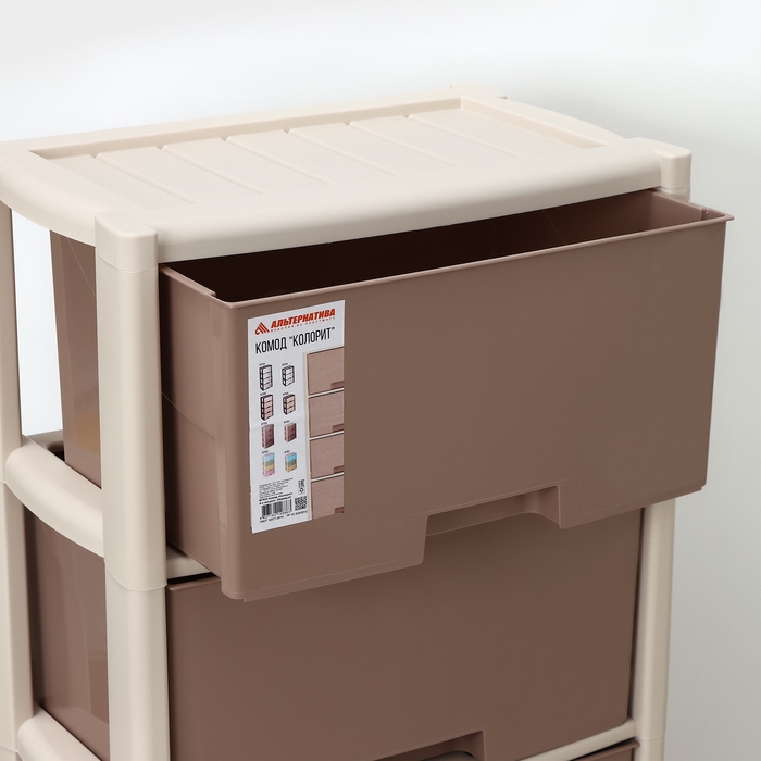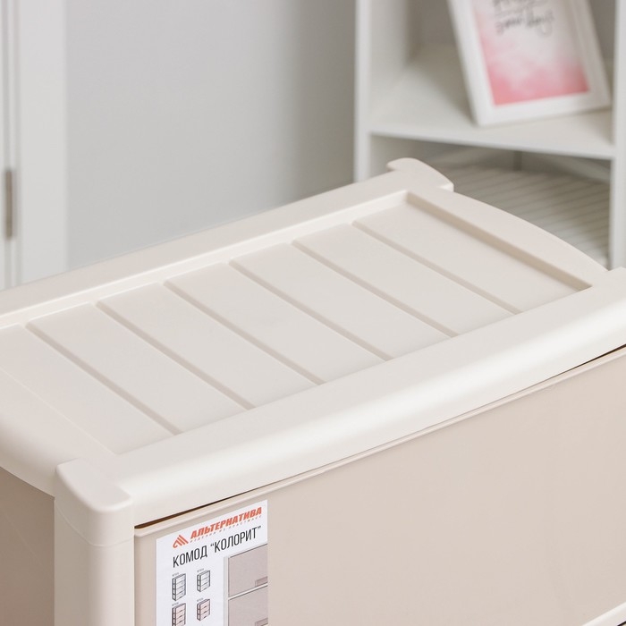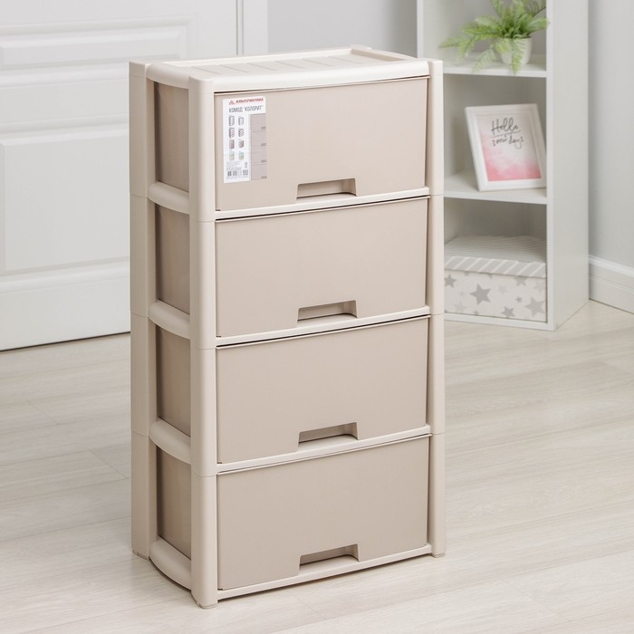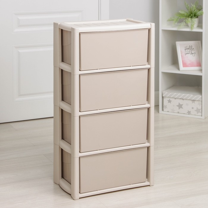 С помощью практичного пластикового комода вы правильно организуете хранение вещей. Изделие имеет жёсткую конструкцию за счёт цельных боковых стенок. Отсутствие острых углов делает его безопасным для ребёнка. Комод изготовлен из экологически чистого материала, не содержит вредных веществ.