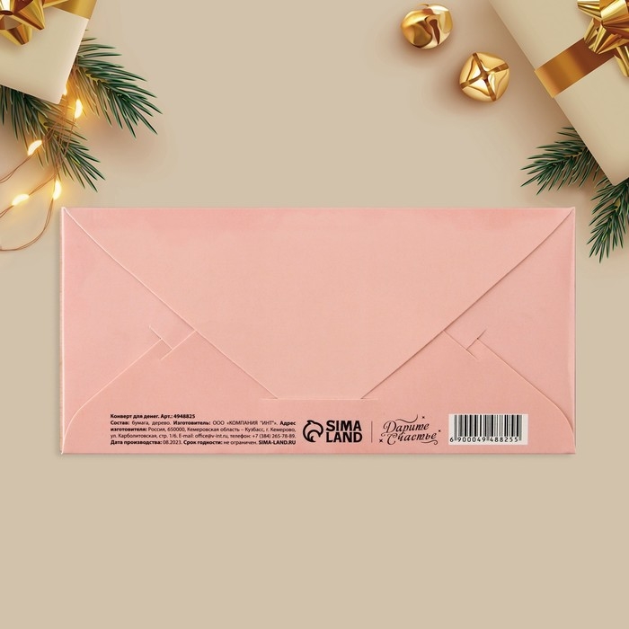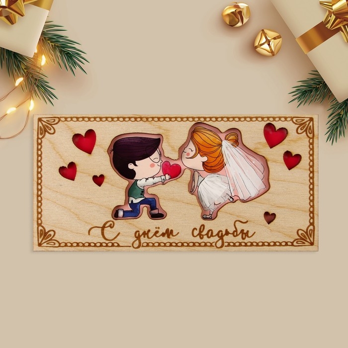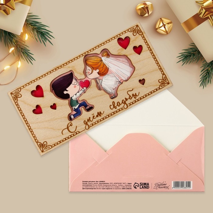 Конверт для денег с деревянным элементом "С Днём Свадьбы!" пара, 16,5 х 8 см
