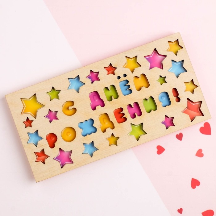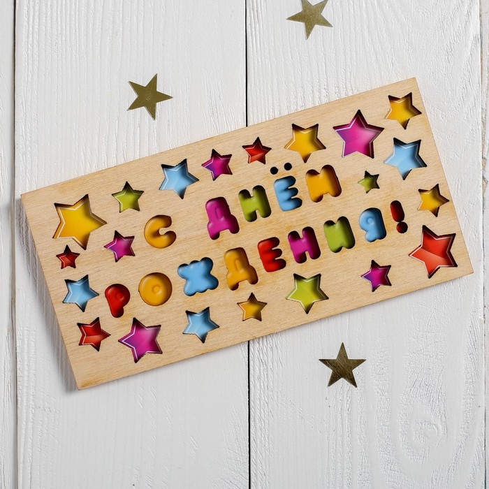Конверт для денег с деревянным элементом "С Днём Рождения" звездочки, 16,5 х 8 см