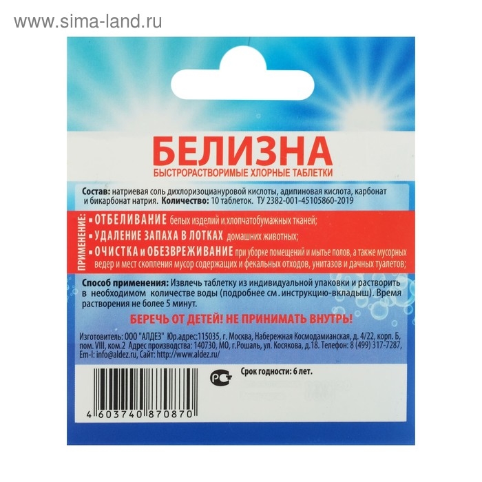 Быстрорастворимые хлорные таблетки для отбеливания белых изделий и хлопчатобумажных тканей; удаление неприятного запаха предметов и поверхностей (сантехническое оборудование, лотки домашних животных, мусорные ведра и т.д.); очистка и обезвреживание при уборке помещений и мытье полов, мест скопления мусора и фекальных отходов, дачных туалетов и прочих загрязнений.