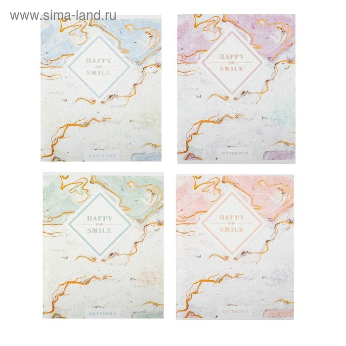 Тетрадь 96 листов в клетку "Мрамор", обложка мелованный картон, блок №2, белизна 75% (серые листы), (серые листы) МИКС
