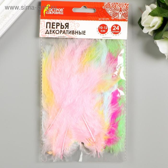 Перья декоративные страусиные, 10-12 см (набор 24 шт) 6 цветов, пастель, ассорти