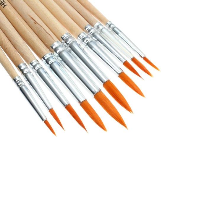 Набор кистей синтетика круглые 10 штук (№1, 2, 3, 4, 5, 6, 7, 8, 9, 10) с деревянными ручками