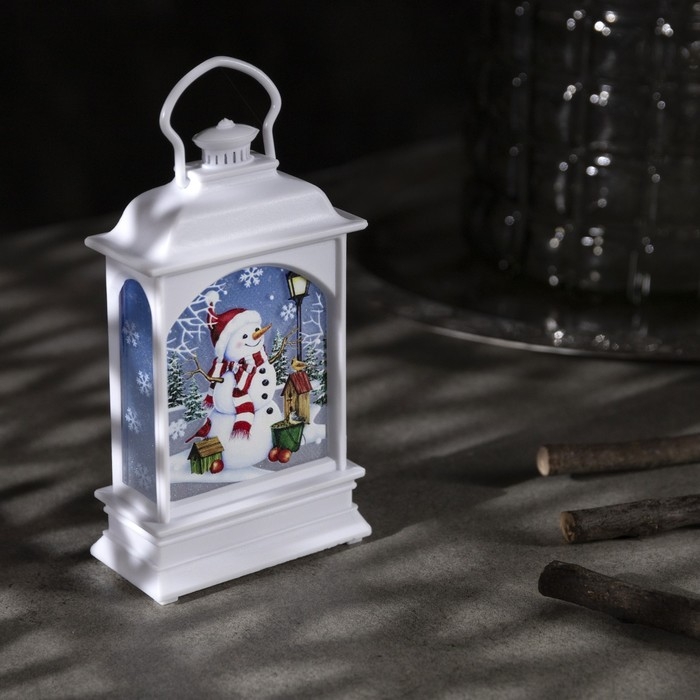 Светодиодная фигура «Фонарь со снеговиком» 7 × 13 × 3.5 см, пластик, батарейки AG13х3 (в комплекте), свечение тёплое белое