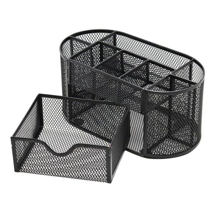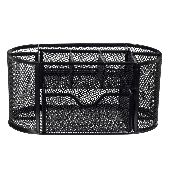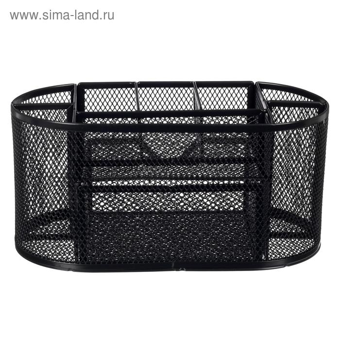 Подставка для канцелярских принадлежностей, 7 отделений, сетка, металл, чёрная