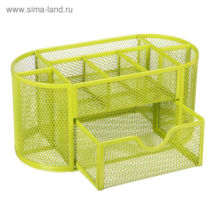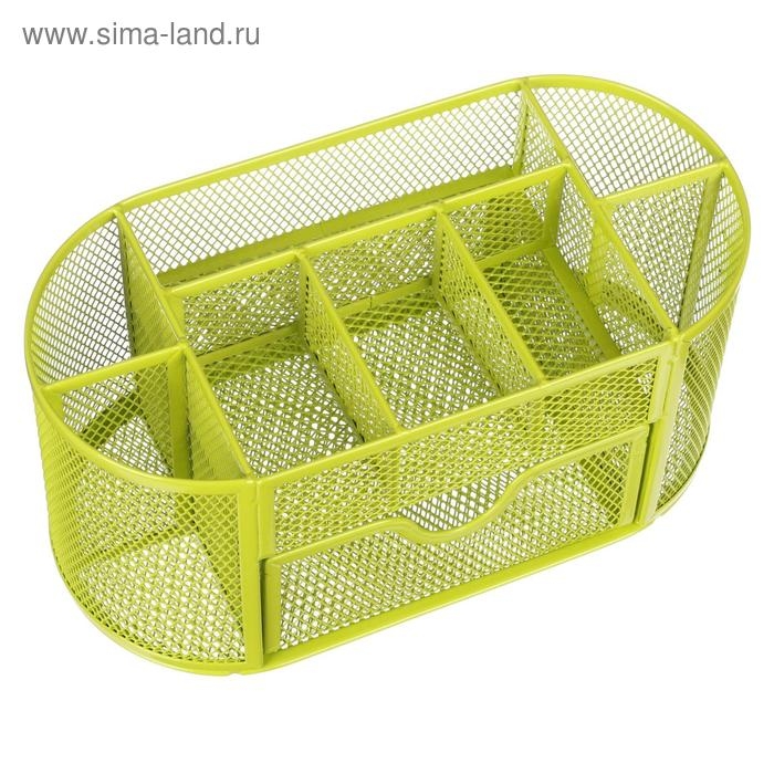 Подставка для канцелярских мелочей 9 отделений, сетка металл, зелёная