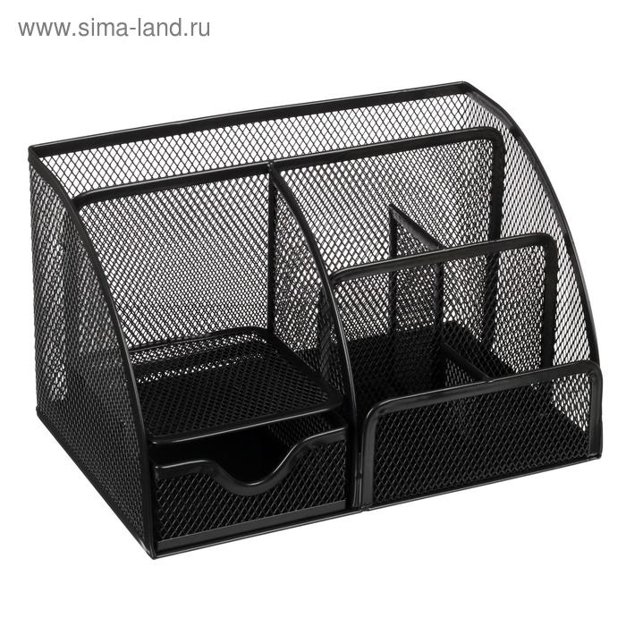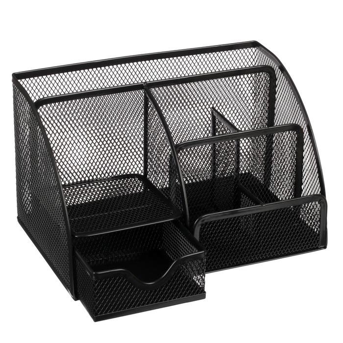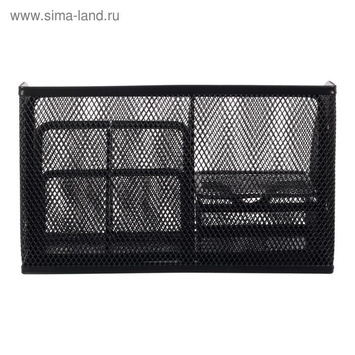Подставка для канцелярских принадлежностей, 7 отделений, сетка, металл, чёрная