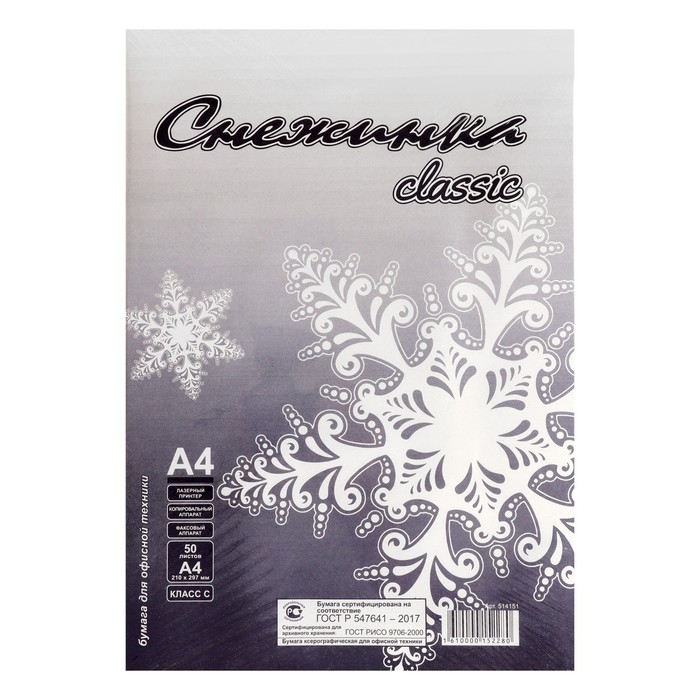 Бумага А4 50 листов "Снежинка" класс С, блок 80 г/м ², белизна 146% (цена за 50 листов)