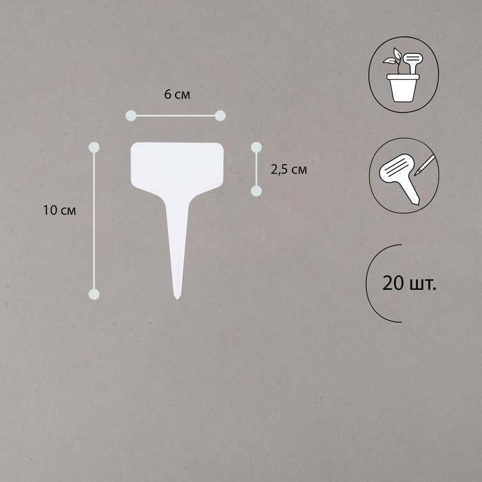 Таблички садовые для маркировки, 15 см, с карандашом, набор 20 шт., пластик