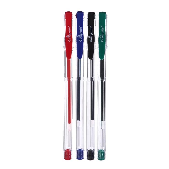 Набор гелевых ручек 4 цвета, стержень синий, красный, чёрный, зелёный, корпус прозрачный