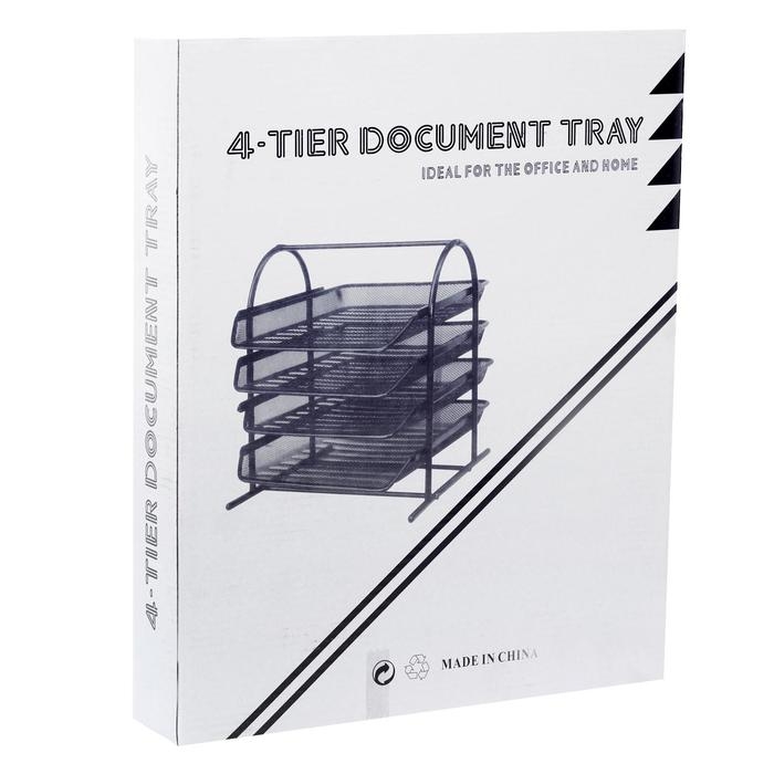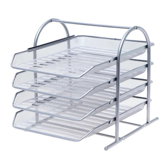 Лоток горизонтальный для бумаг 4 отделения, сетка металл, цвет серый