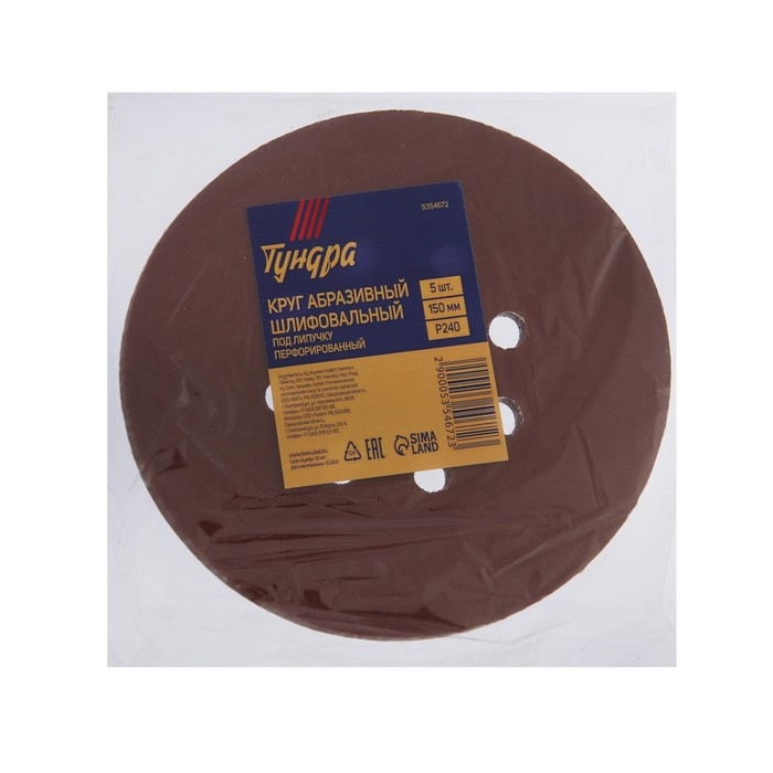 Круг абразивный шлифовальный под "липучку" ТУНДРА, перфорированный, 150 мм, Р240, 5 шт.