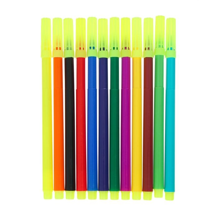 Фломастеры 12 цветов "Мышка", в пластиковом пенале с ручкой, вентрилируемый колпачок, МИКС