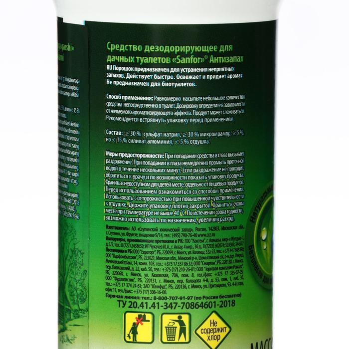 Средство дезодорирующее для дачных туалетов "Sanfor", Антизапах, 400 г
